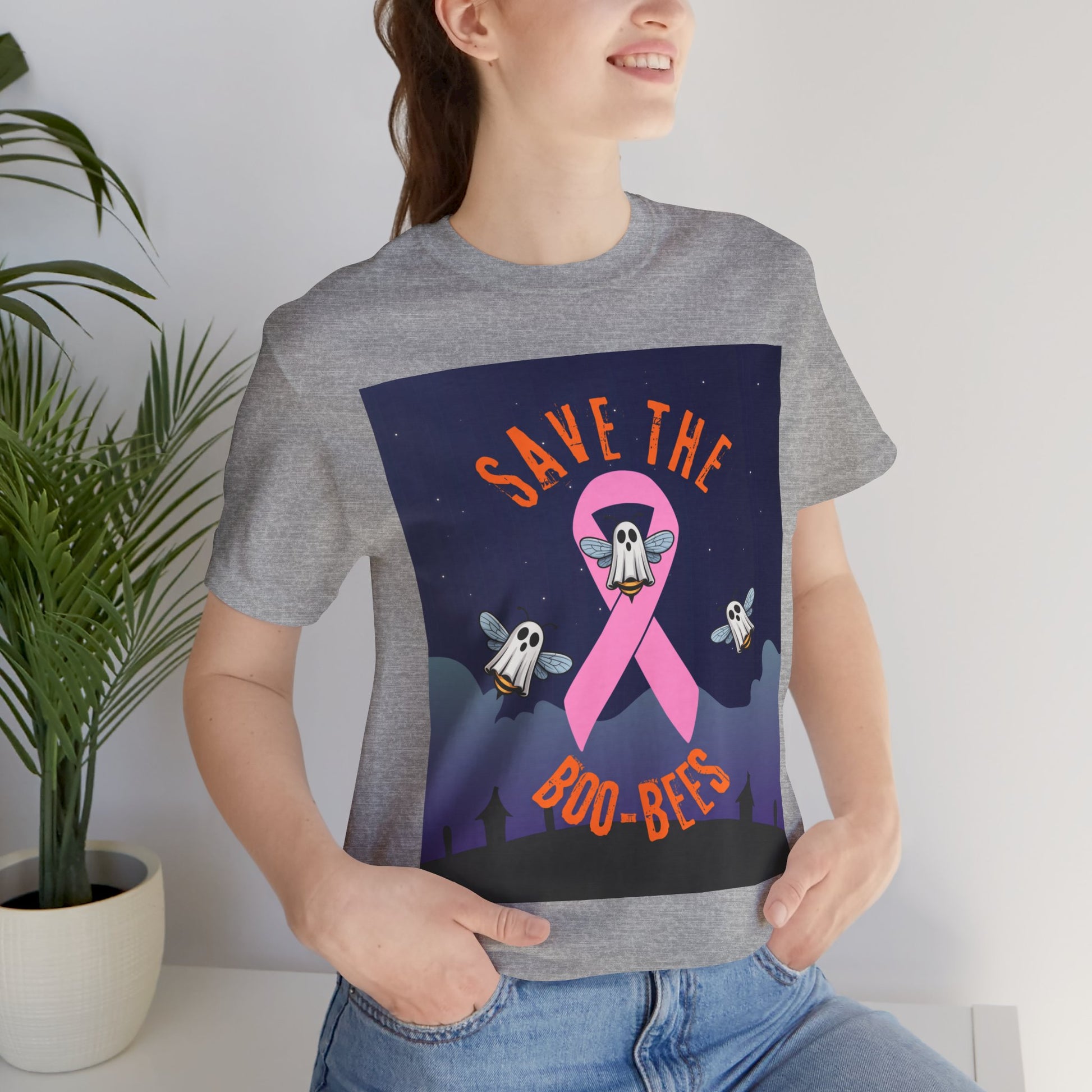 Celebrate the spooky season with this charming Unisex Jersey Short Sleeve Tee, designed to add fun and flair to your Halloween festivities! The playful "Save the Boo-Bees" graphic features adorable ghostly characters, creating a light-hearted vibe that's perfect for dress-up parties, family gatherings, or a cozy night in. Crafted from high-quality, breathable fabric, this tee ensures all-day comfort whether you're trick-or-treating with friends or lounging at home. Ideal for adults and fashion lovers alike, this tee is a delightful choice for Halloween, breast cancer awareness events in October, or any casual occasion that calls for a touch of whimsy. This versatile piece makes a great gift for those who love to celebrate with style, whether it's for a spooky get-together or simply as a fun everyday outfit.